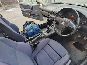 -The gray BMW has clean lightstone cloth interior and is manual